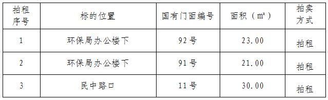 (二)拍租國有門面5年期使用權,詳見下表: